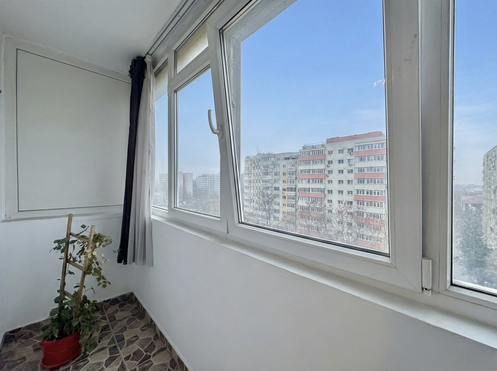 Balcoane avem doua, unul la sufragerie, pe toata lungimea ei si unul la ultimul dormitor. Ambele inchise in termopan.