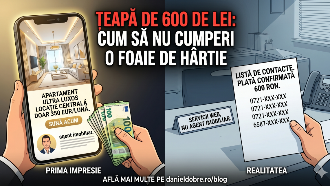 Cu toții am văzut acele anunțuri: poze cu apartamente desprinse din revistele de design interior, locații centrale și un preț care te face să crezi că ai găsit, în sfârșit, „potul cel mare”. Sunt acele oferte „prea bune ca să fie adevărate”.