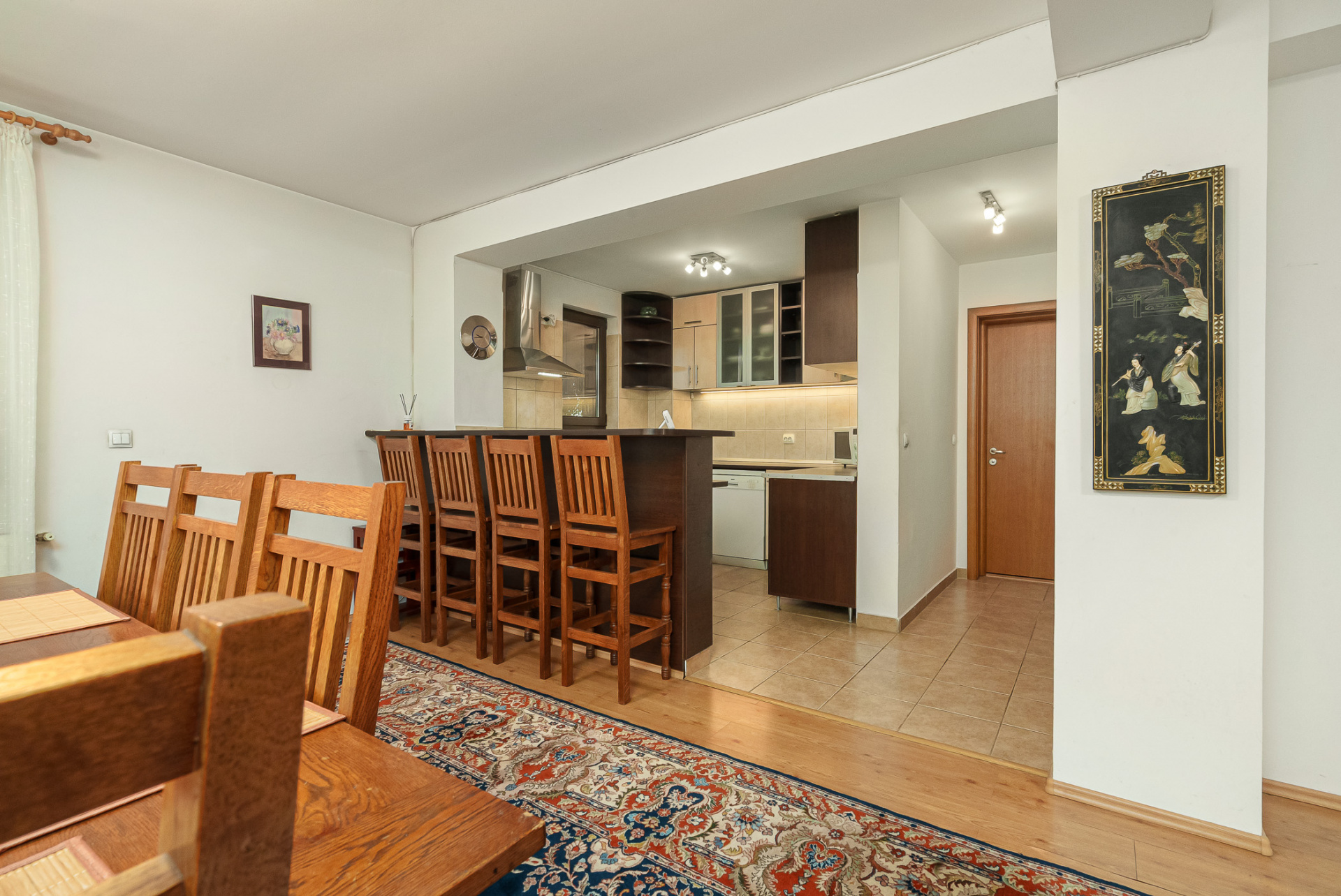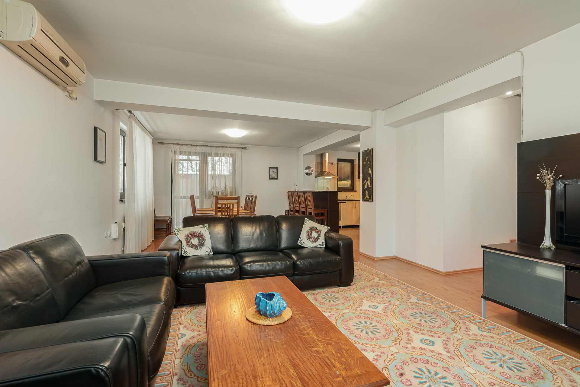 Casa se inchiriaza mobilata si utilata complet, dotata cu centrala termica proprie cu boiler inclus, cu aparate de aer conditionat, masina de spalat, aparatura electronica si electrocasnica. Un dormitor, situat la etajul unu, este gol, nemobilat. Exista deschidere din partea proprietarilor in ce priveste aducerea altor obiecte de mobilier in locuinta, fie ca sunt ale chiriasilor, fie ca sunt solicitate proprietarilor, precum si pentru dotarea cu alte aparate electrocasnice. Totul depinde de chirias si perioada contractuala, iar fiecare situatie se discuta in parte.