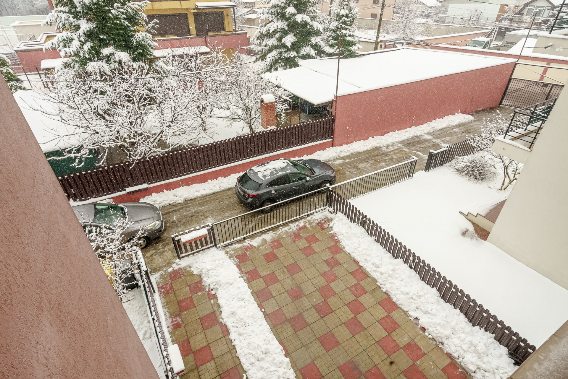 Avem doua locuri de parcare in curtea imobilului, un loc gandit pentru spatiu de joaca pentru copii, o zona de verdeata si o terasa acoperita in spatele casei, cu acces din living, ideala pentru clipele de relaxare cotidiene. In plus, spatiul este umbrit de vegetatia masiva, astfel incat este o reala placere utilizarea pe timp de vara a terasei respective.
